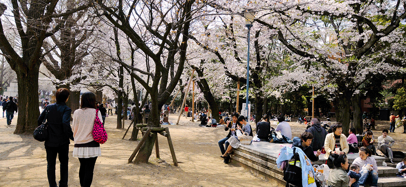 Having a picnic and drinking sake while looking at cherry blossoms is a tradition that goes back to the Heian Period. But with a convenience store 5 minutes away at most from anywhere, these days people just keep “refueling” and can party from morning to evening (and at night, parks often light up the cherry blossoms!). In fact, an old proverb has come to be associated with hanami: 花より団子 hana yori dango – literally “sweets over flowers.” The implication is that some people don’t come to enjoy the sakura as much as for the wild partying.