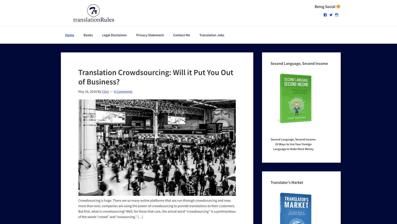 Created by the author of the book Translation Rules: 40 ways to attract clients, stay focused, and find success as a freelance translator, this blog covers a variety of topics that can resonate with and benefit freelance translators and language professionals. Spanish language consultant and author Clint Tustison writes content about translation rules, freelance life, and the translation industry in general. If you’re in the U.S., you may also search for translation jobs based on your location.