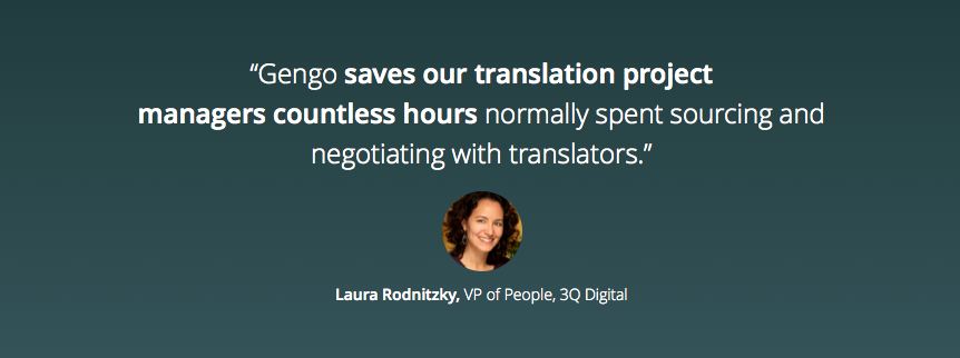 With Gengo, rather than searching for translation talent and juggling projects, 3Q Digital is able to focus on developing strategies as well as launching and optimizing new campaigns for clients who are going global.