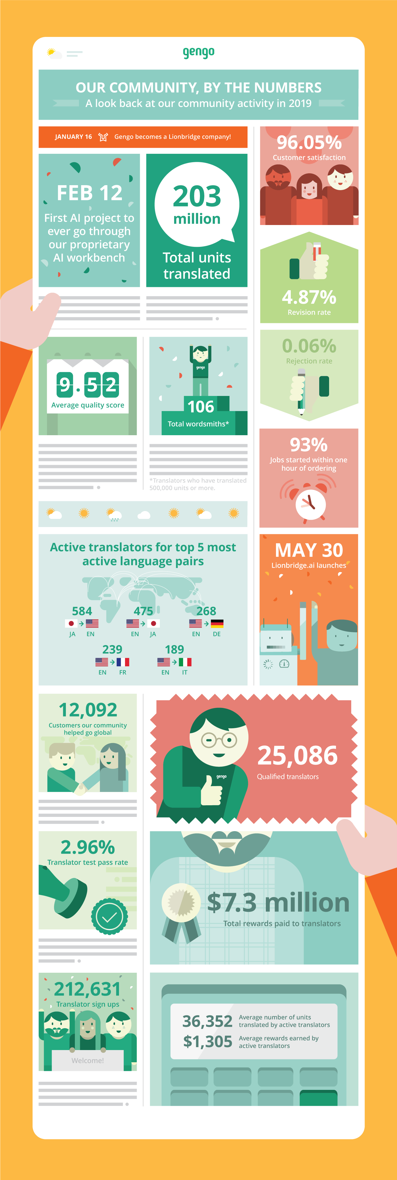 2019 was another exciting year of changes & learnings at Gengo, starting with our acquisition by Lionbridge in January, and we haven’t stopped growing since!