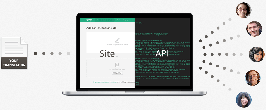 Gengoは、ワンクリックで言語の壁をこえ、全ての人が世界中の情報を理解・発信できる翻訳プラットフォームです。全ての人に良質な翻訳を 提供すべく、Web・APIから簡単に依頼ができ、合格率が約7%の厳しい翻訳テストに合格したトランスレーターのみが翻訳しています。