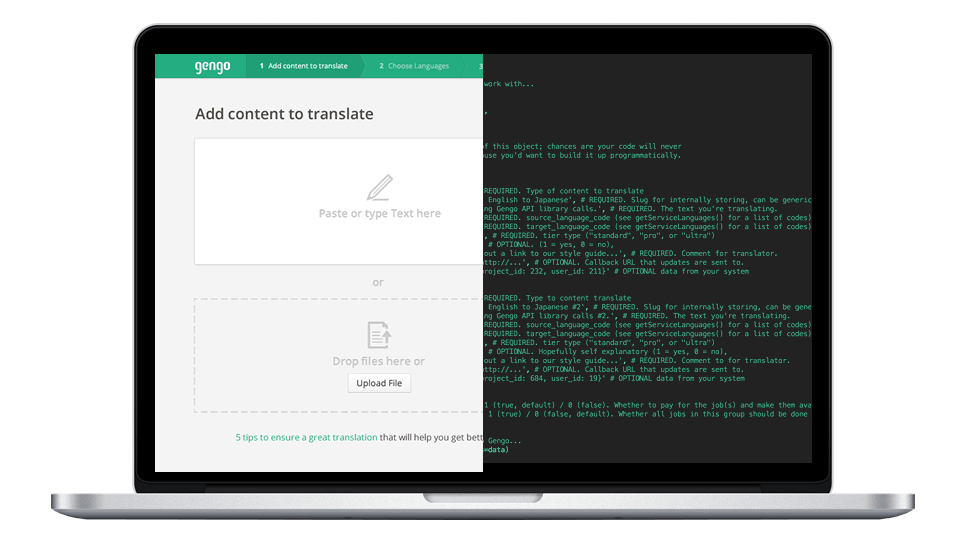 GengoのシンプルでリーズナブルなAPIを使えば、Eコマース、旅行、メディアの商品説明やユーザーレビューなどのコンテンツをシームレスに翻訳できます。