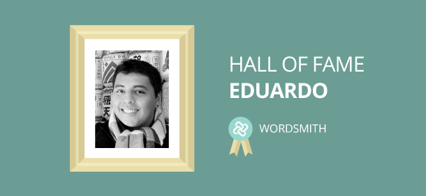 Gengo’s newly hailed Wordsmith is Eduardo, a Brazilian native whose goal is to become a “serial translator” in different countries. Currently learning his third language, this hall-of-famer wants fellow translators to know the importance of exposing yourself every day to the language you want to master.